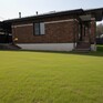 Участок 6,4 сотки: выполнены ландшафтные работы, посажен газон, устроена система дренажа и водоотведения с выводом в сборный колодец, построен навес на два автомобиля с эко-покрытием из мраморной крошки, установлен забор из металлопрофиля с автоматическими откатными воротами, перед воротами — асфальтированная парковка.